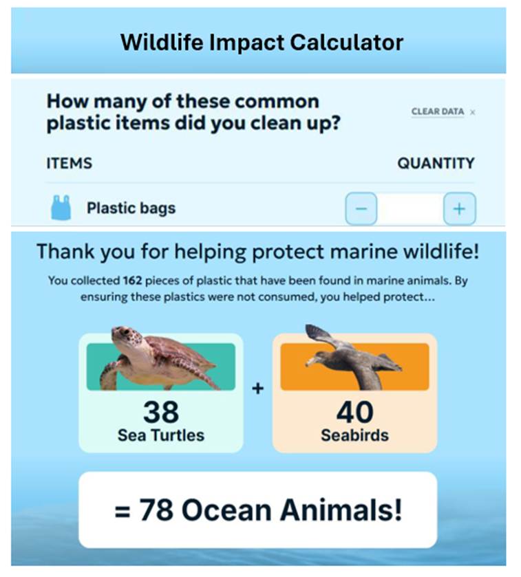 By translating this research into an accessible tool, the calculator allows users to estimate how cleanup efforts may help reduce harm to marine species. From plastic bags to food containers, even small amounts of debris can have significant consequences for ocean ecosystems.